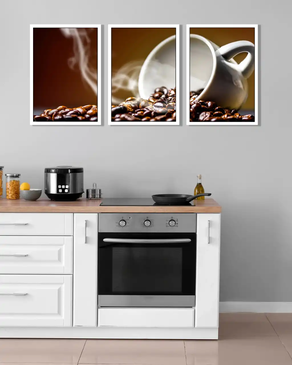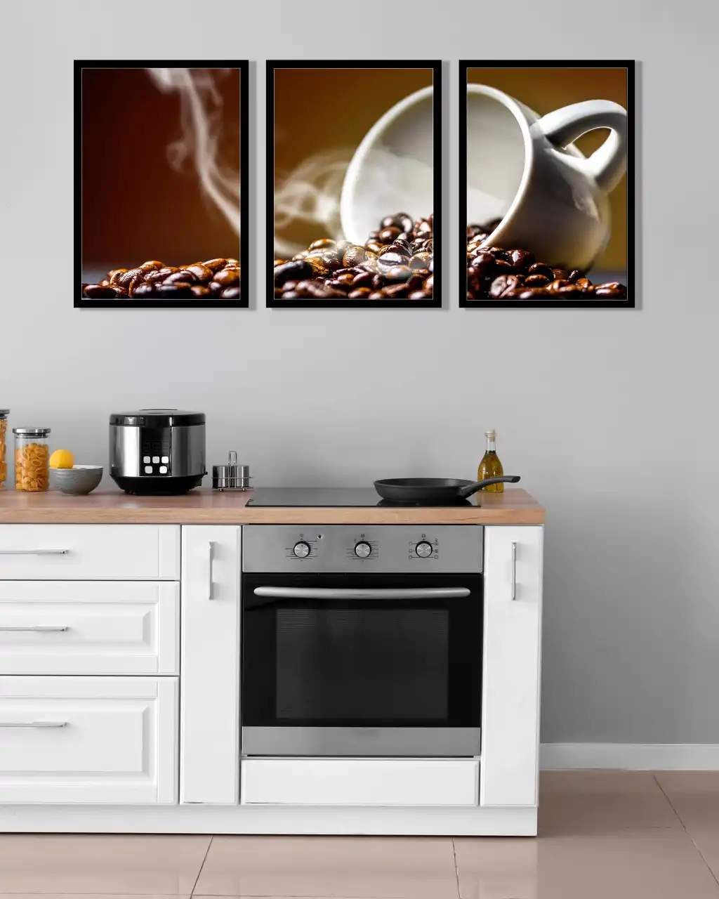 Kahve Temalı Çerçeveli Ahşap Tablo Seti, Ev Dekoru