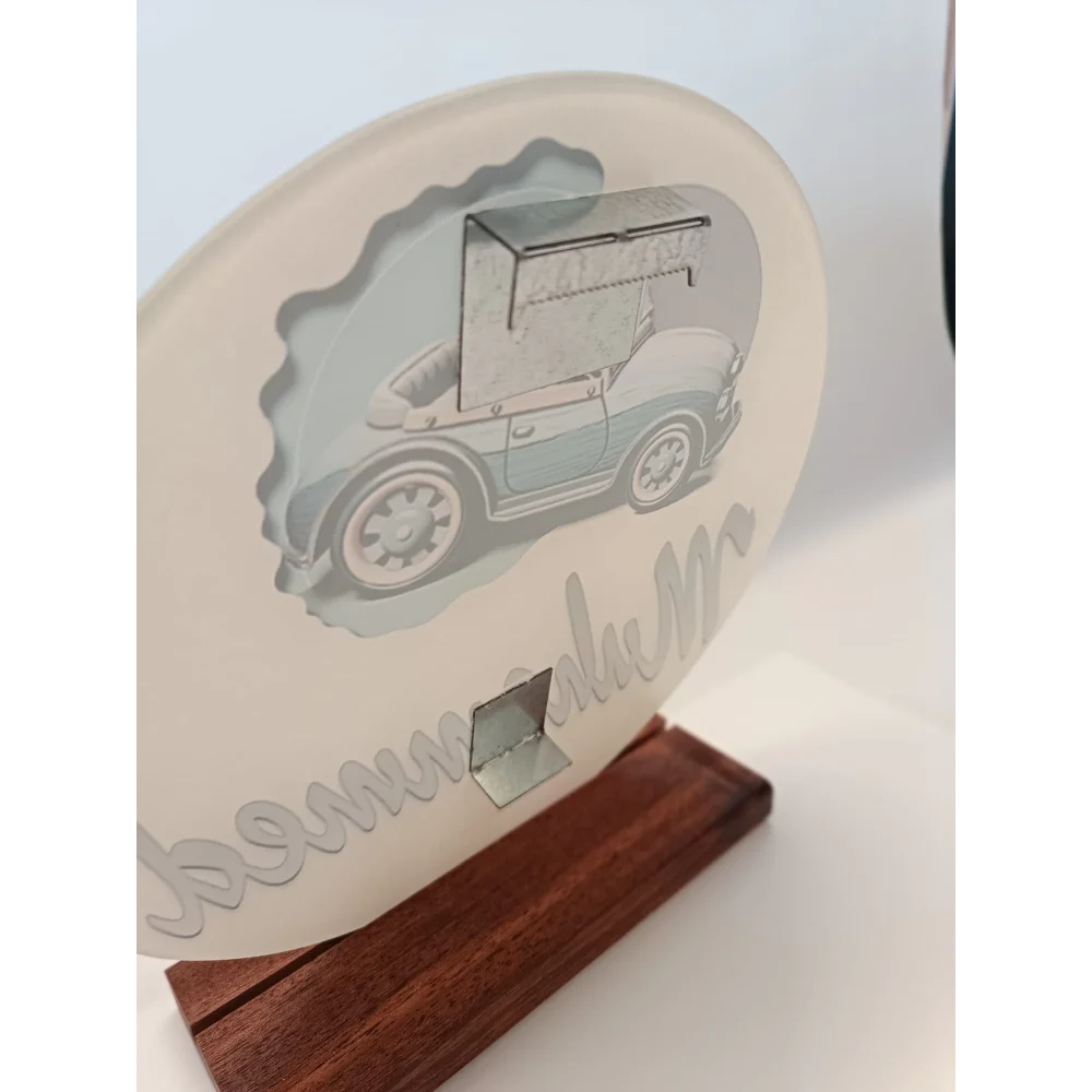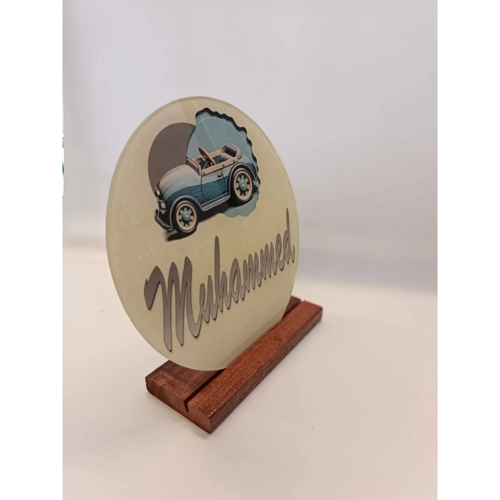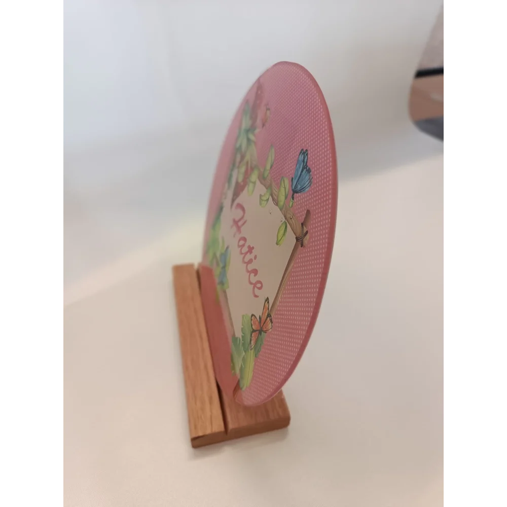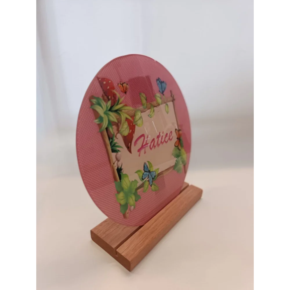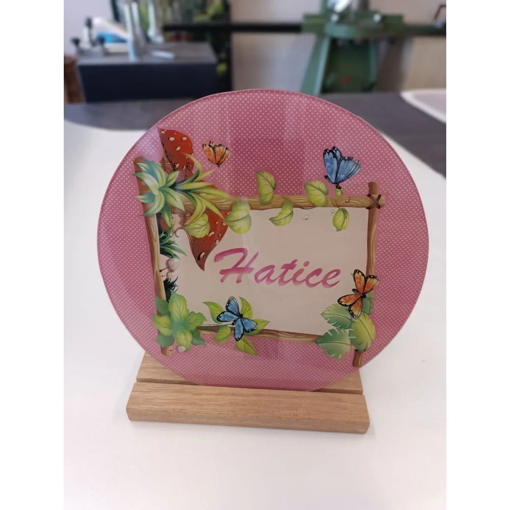 Ürün 26cm temperli cam üzerine uv baskı yapılarak hazırlanıyor.