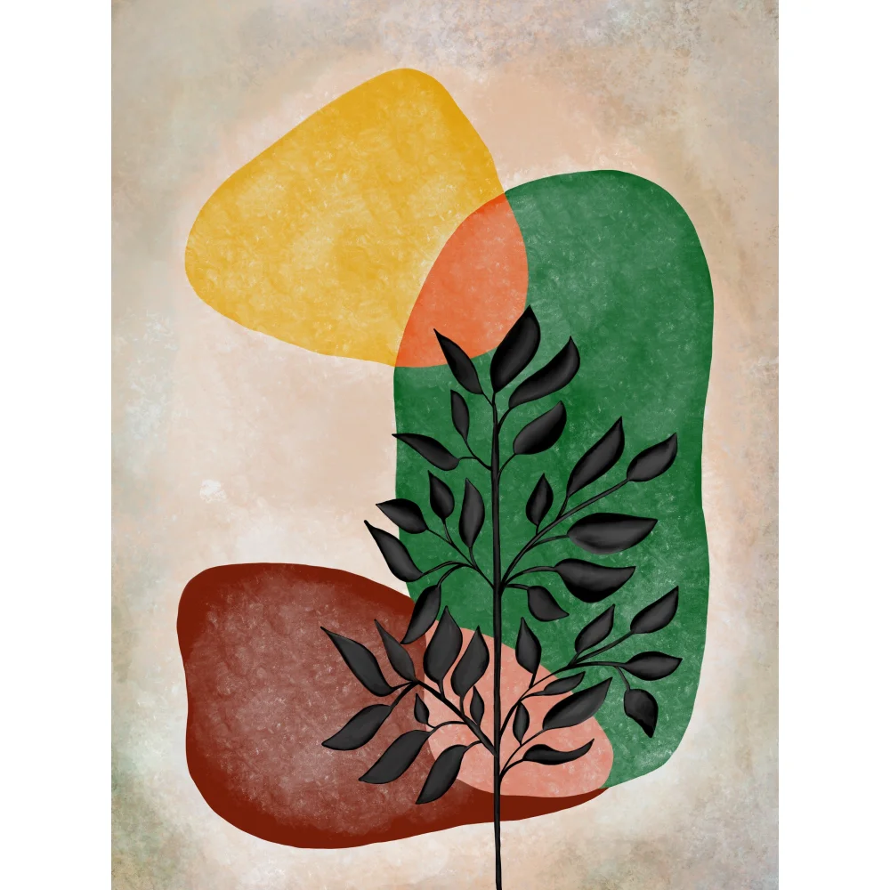 • TAŞ VE YAPRAK SOYUT KANVAS TABLO