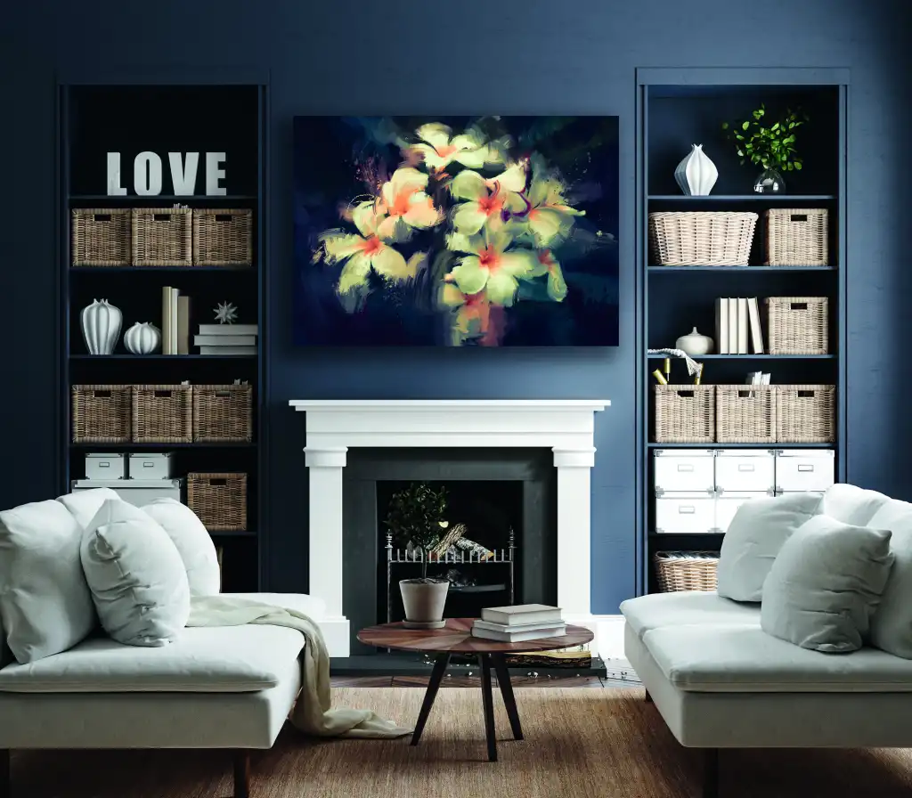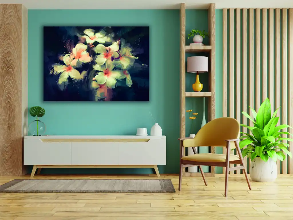 Yağlı Boya Görünümlü Beyaz Çiçek Kanvas Tablo