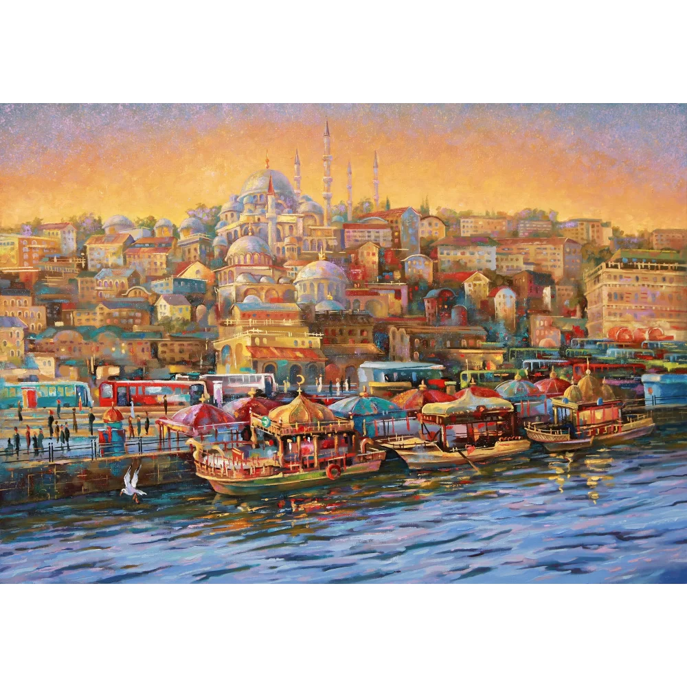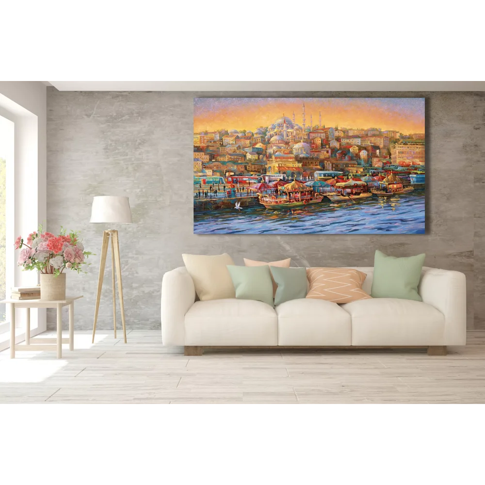 • YAĞLI BOYA GÖRÜNÜMLÜ İSTANBUL MANZARASI KANVAS TABLO
