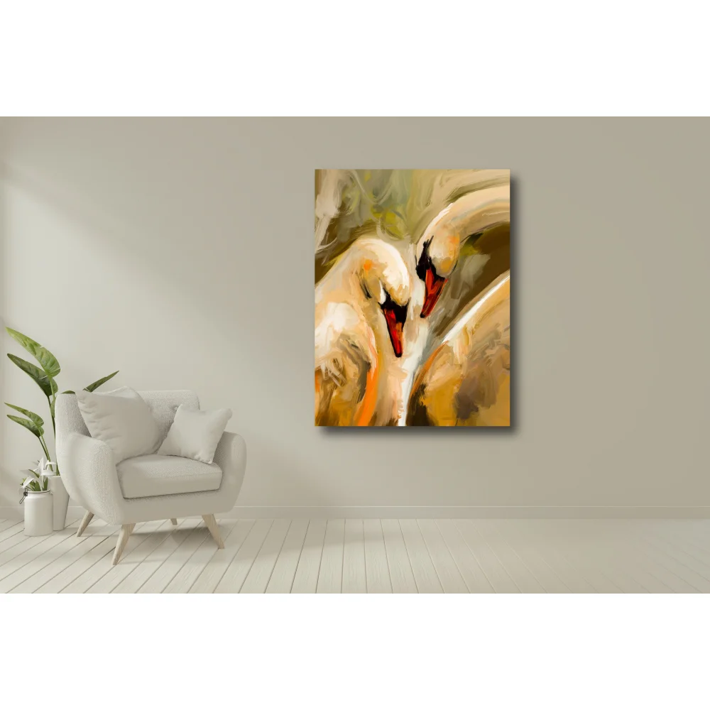• YAĞLI BOYA GÖRÜNÜMLÜ KUĞU KANVAS TABLO