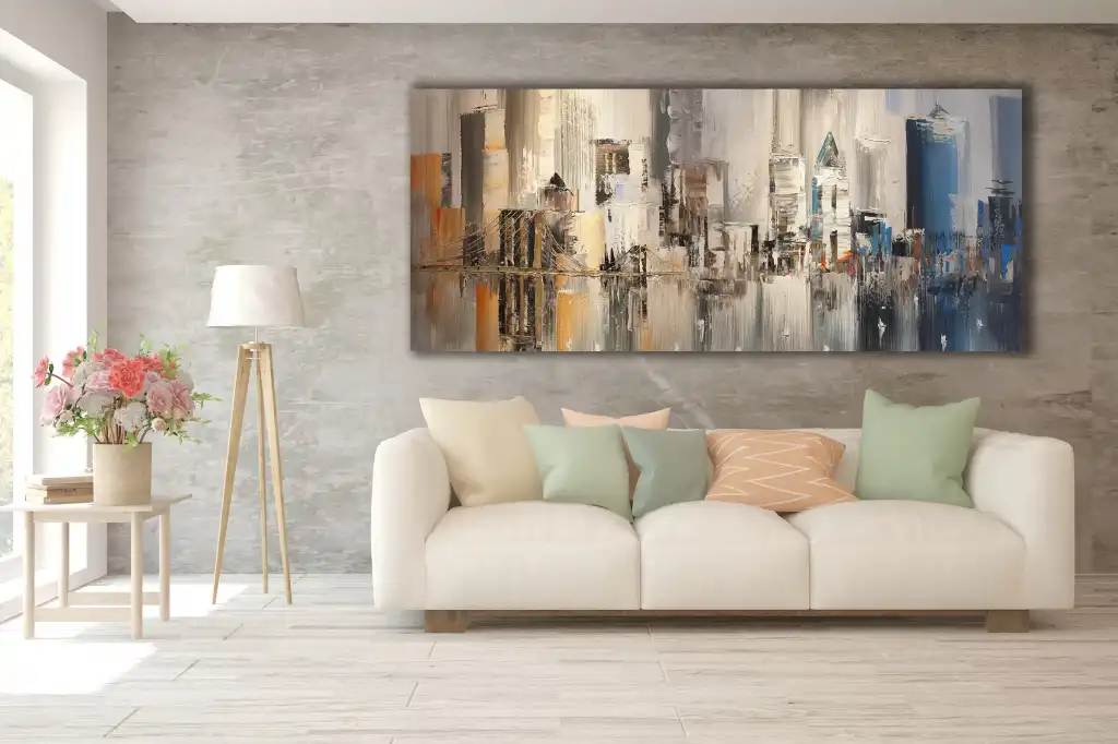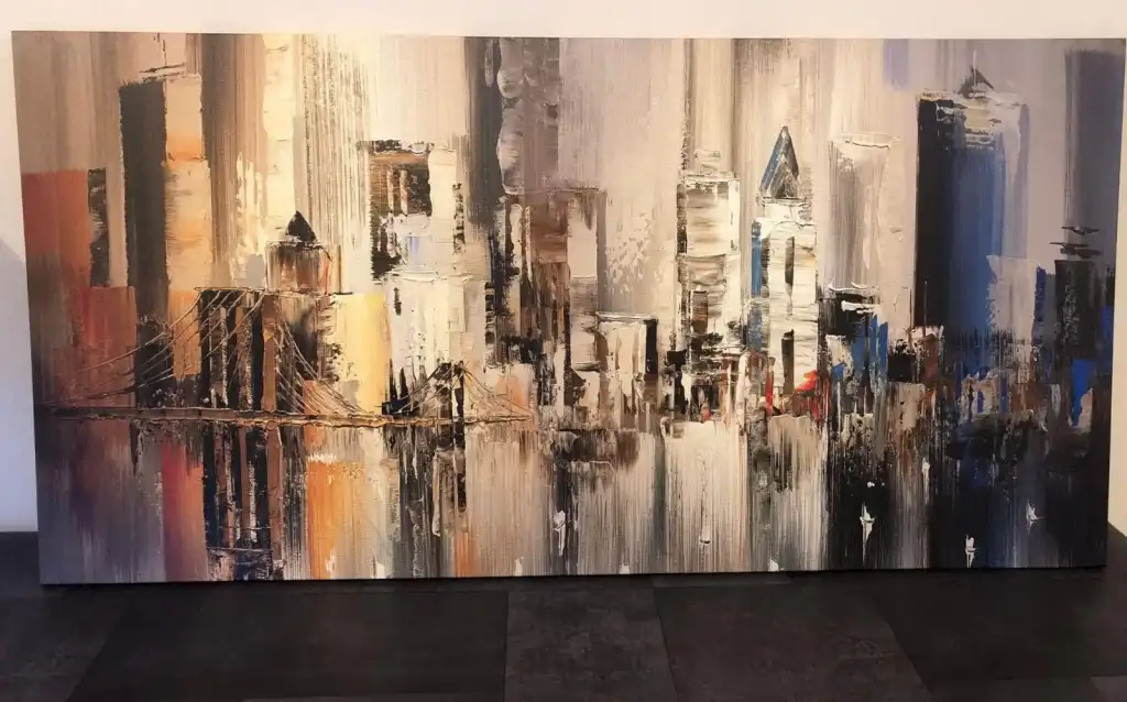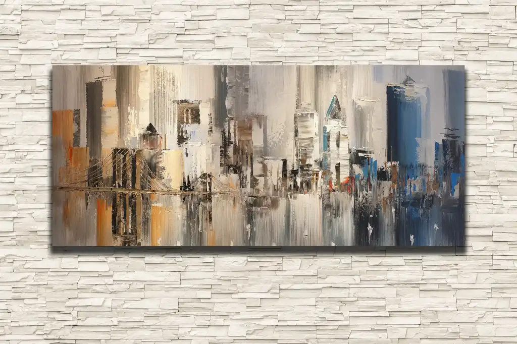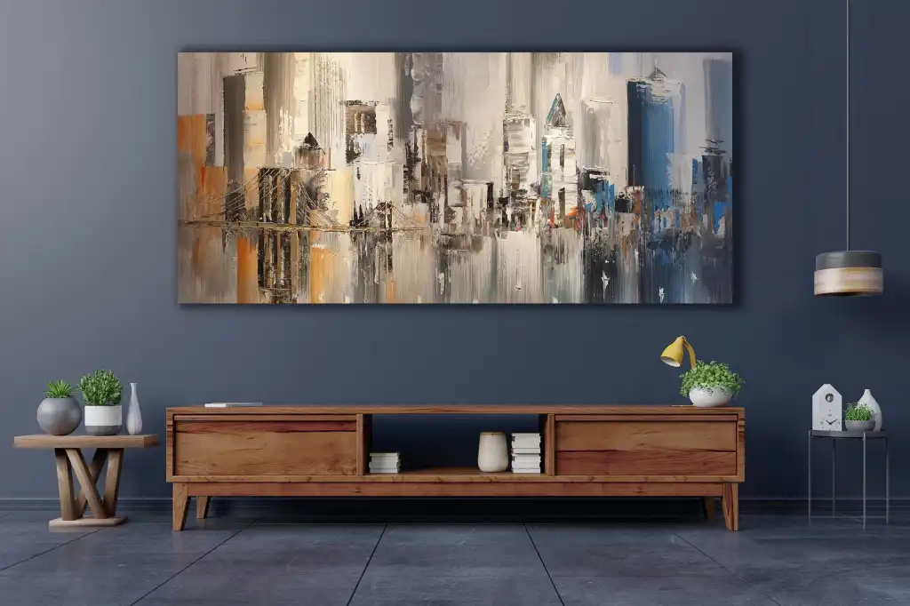 YAĞLI BOYA GÖRÜNÜMLÜ MODERN SOYUT ŞEHİR KANVAS TABLO