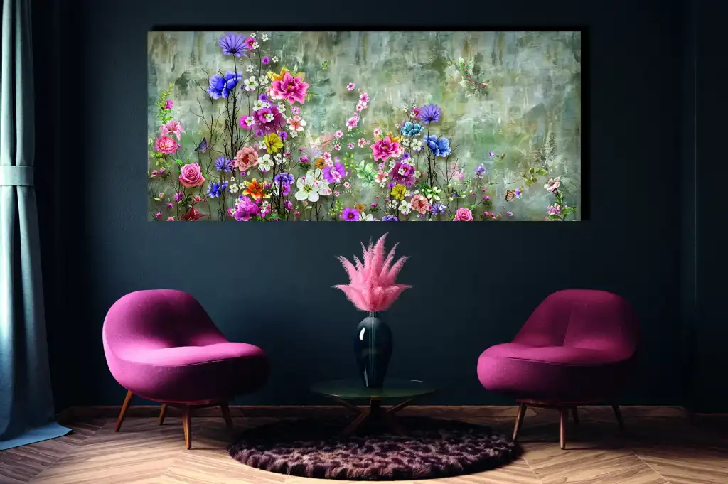 YAĞLI BOYA GÖRÜNÜMLÜ RENKLİ ÇİÇEKLER KANVAS TABLO