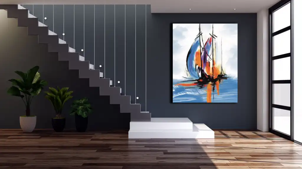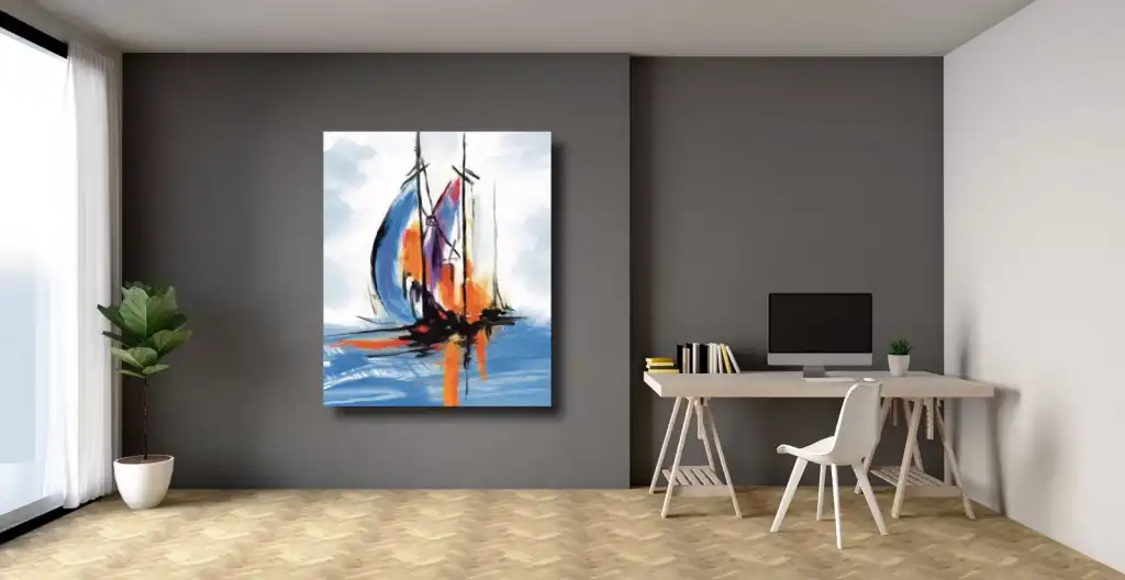 YAĞLI BOYA GÖRÜNÜMLÜ SOYUT YELKENLİ KANVAS TABLO