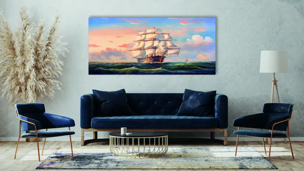 YAĞLI BOYA GÖRÜNÜMLÜ YELKENLİ KANVAS TABLO