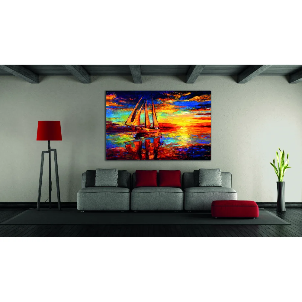• YAĞLI BOYA GÖRÜNÜMLÜ YELKENLİ KANVAS TABLO